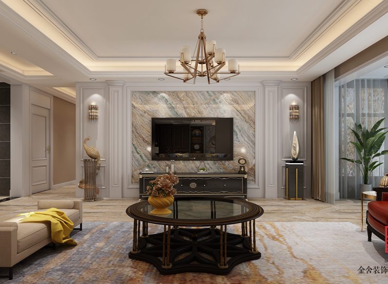 榮盛華府178平米美式輕奢風格裝修效果圖