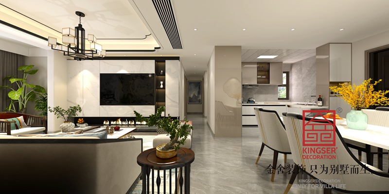 春江花月新中式風(fēng)格別墅裝修餐廳效果圖