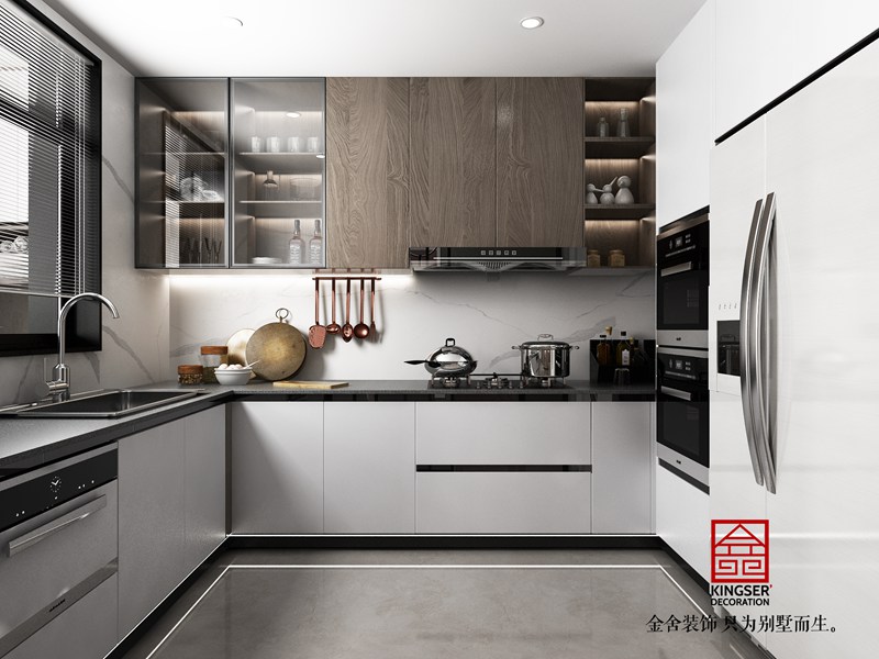 金碧天下現代輕奢風格別墅裝修廚房效果圖