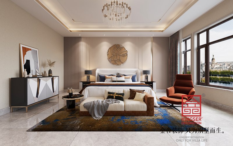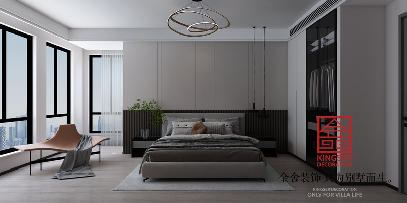 衡水漢王府別墅裝修現代法奢風格臥室效果圖