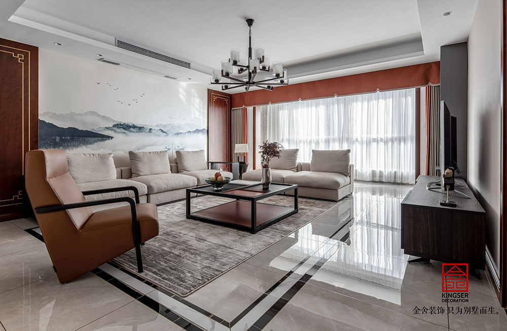 康馨園200㎡新中式實(shí)景 清新大氣的氛圍之下 宛如生活在水墨畫中 塑造出最具中式家居的層次美感