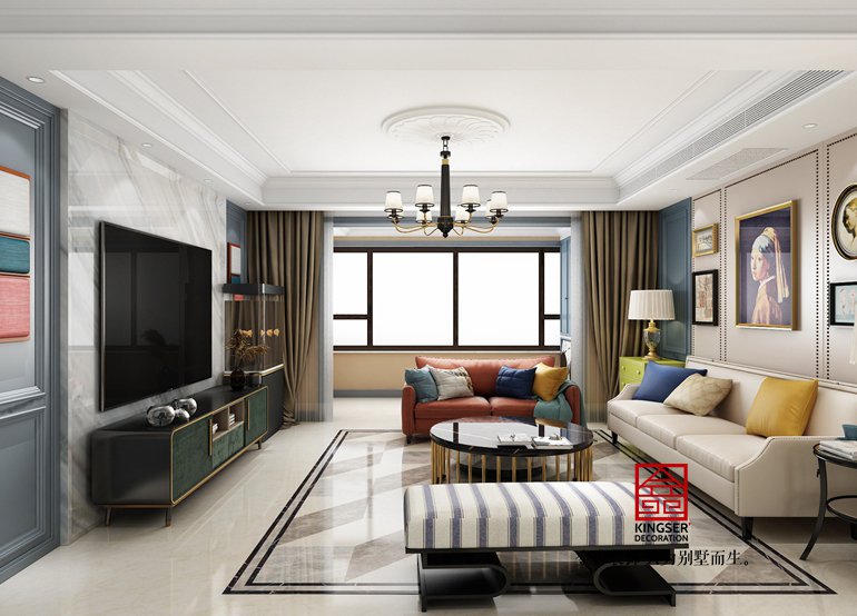 榮盛華府-美式風(fēng)格-客廳