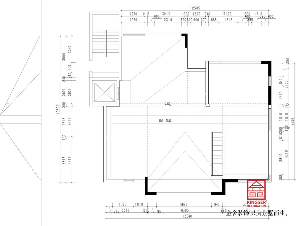 廚房相對較小、頂部閣樓采光較弱、空間使用率較低,樓梯光線較暗,沒有和樓下產(chǎn)生互動。