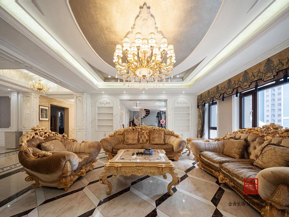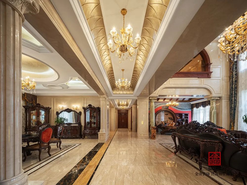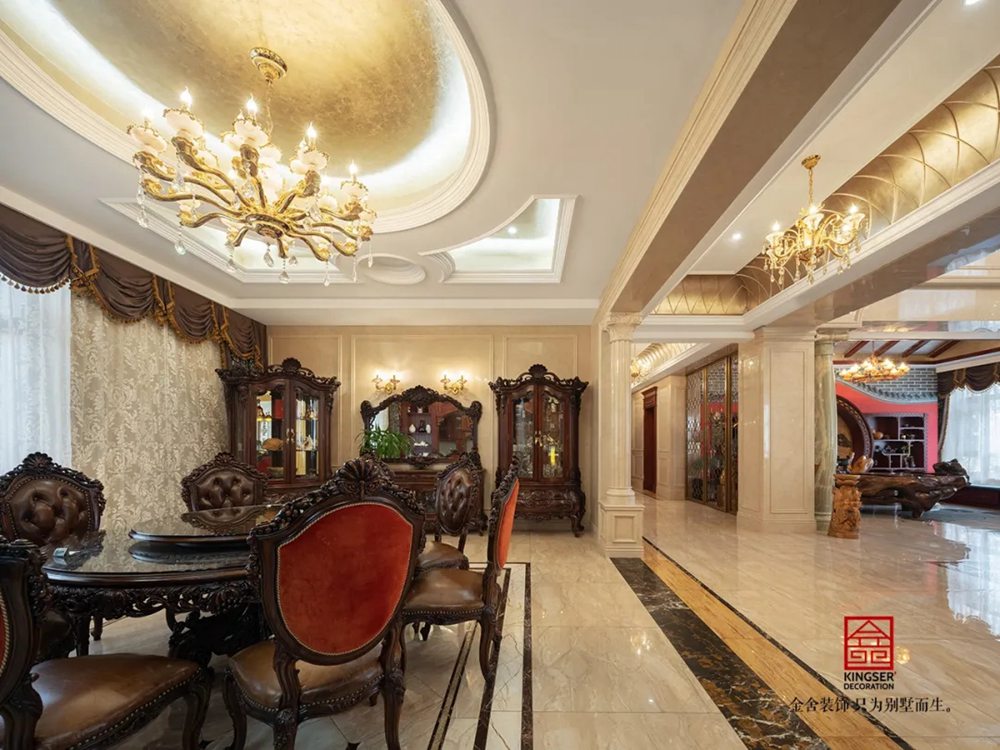 此案例為石家莊金舍裝飾-無極御瓏華府2400平米別墅歐式風格裝修實景。御瓏華府“中西合璧”這是一套集“土建+硬裝+軟裝+庭院”一體的全案設計,占地東西70米,南北50米,整個結構坐落于小區的核心位置,打開家門,先是私有的庭院生活,再而迎面就是小區的綠化水系,視野開闊,一覽全景。方案設計為“中西合璧”風。浪漫的歐式古典風融入東方設計元素,嶄新的文化底蘊得以傳承,既有歐式的富貴典雅又有中式的文化底蘊,二者巧妙應用,提升整個空間氣質。