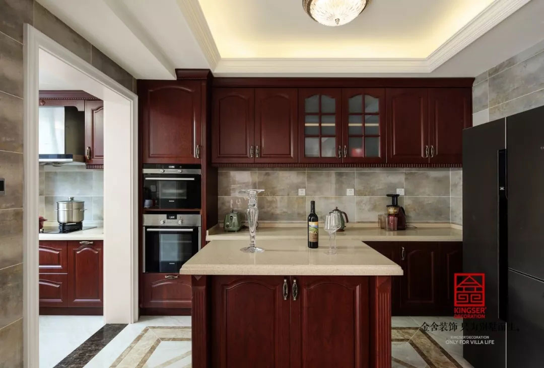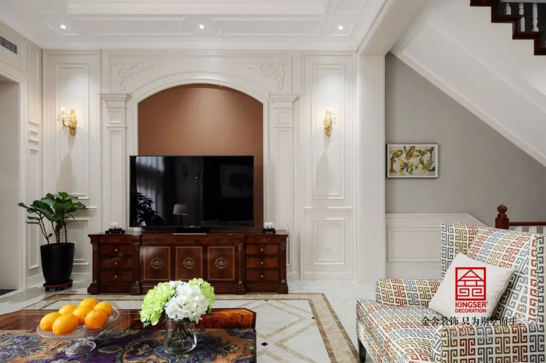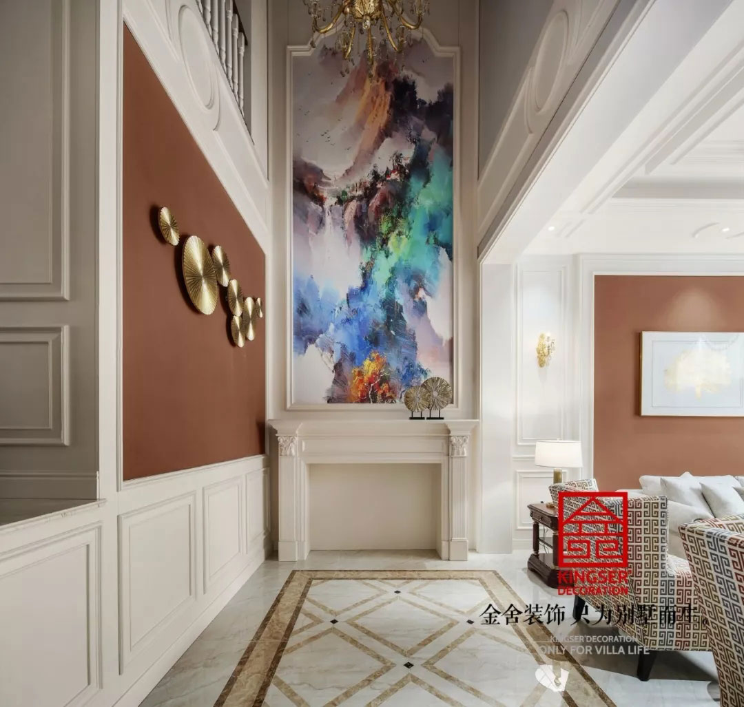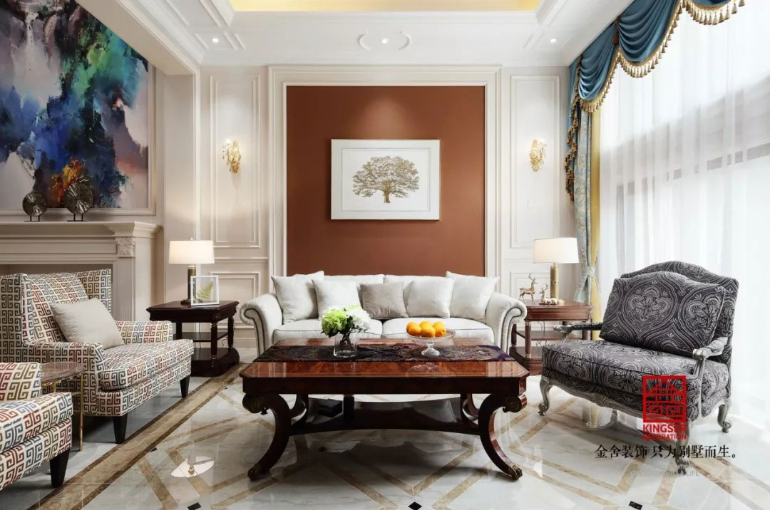 此案例為石家莊別墅裝修-藍郡別墅600平米美式風格裝修實景。色彩斑斕的配色帶著現代生活憧憬的意味融化在現代家居之中,暢想的時尚感縈繞在不斷變化的設計之中,有嘗試,有徜徉;有幻夢,有臆想,每一個對于生活的暢想都將人們帶到另一種生活之中,通透的色彩象征著一種生活態度,生活的真諦不在于奢華的享受,在于生活的舒心和內心的平靜!