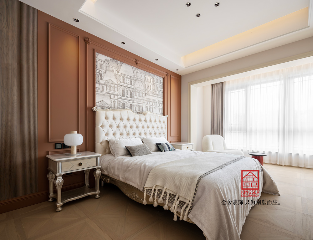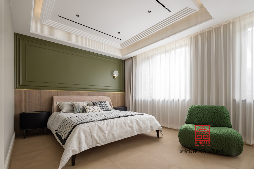 三樓主臥空間納入窗外四季風(fēng)光意境,簡(jiǎn)潔、舒適、寧?kù)o,在這個(gè)臥室體現(xiàn)得淋漓盡致,設(shè)計(jì)就該更于回歸生活,并非不食煙火,而是剔除了方方面面的冗雜,以更鮮明更清晰的方式去表達(dá)出眼下的狀態(tài)。