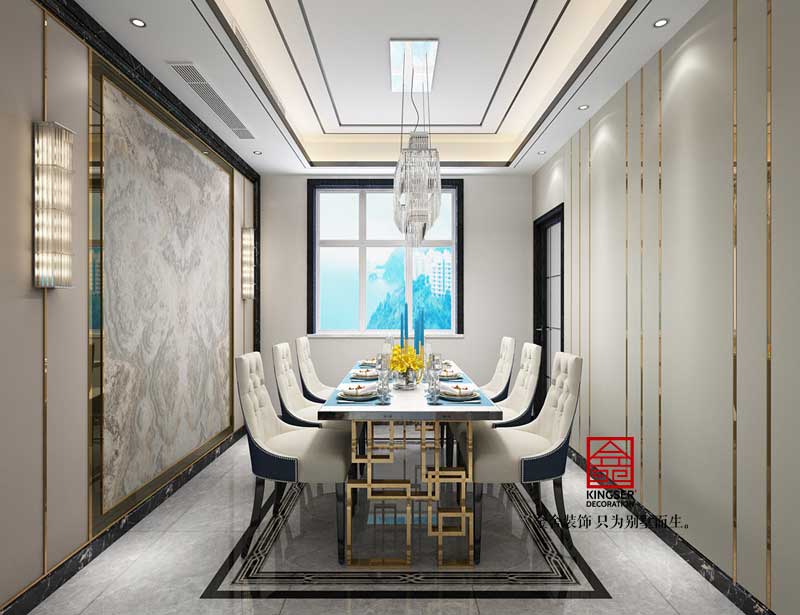 此案例為石家莊金舍裝飾-榮盛華府185平米港式風格裝修效果圖。港式風格家居也有其自身特點,多以金屬色和線條感營造金碧輝煌的豪華感,簡潔而不失時尚。
