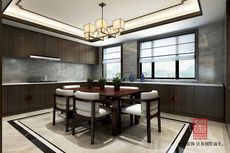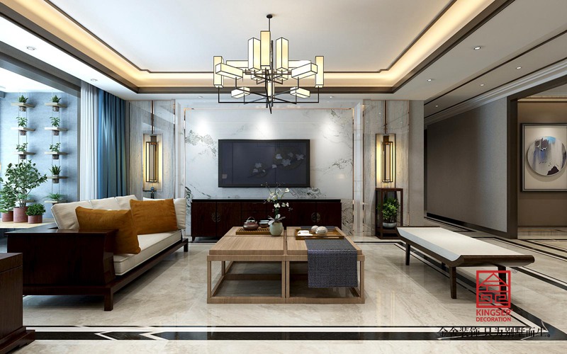 設計說明:此案例為石家莊金舍裝飾-融創中心217平米中式風格裝修效果圖。新中式風格是中國傳統風格文化意義在當新中式風格是中國傳統風格文化意義在當代時代背景下的演繹,空間多用簡潔硬朗的線條,古樸的風格加上現代材質,展現清雅含蓄,端莊豐華的東方式精神。代時代背景下的演繹,空間多用簡潔硬朗的線條,古樸的風格加上現代材質,展現清雅含蓄,端莊豐華的東方式精神。