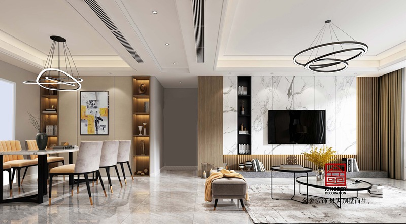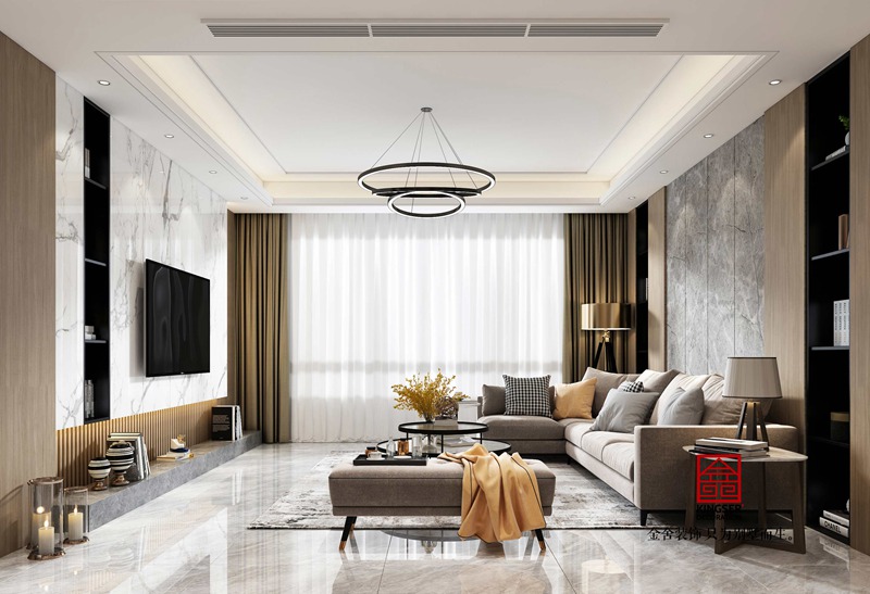 因為生活方式的轉變,整體在向現代靠攏,運用簡單的直線條使空間凸顯層次感,加之主人的個人喜好和品味,完成符合現代人的新中式。沒有太多的造型修飾,利用吊頂來區分各個區域的功能定位,運用軟裝搭配,提升整體的氛圍及品質。