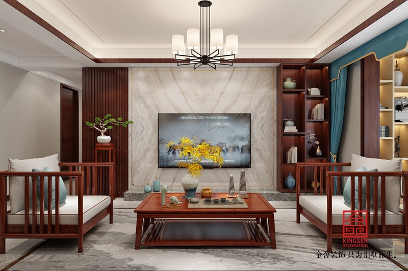 設計說明:此案例為石家莊金舍裝飾-東南智匯城132平米新中式風格裝修圖。新中式風格,既是中國傳統風格文化與現代時尚元素的融合與碰撞,又是在中國當代文化理解基礎上的現代設計。因為生活方式的轉變,整體在向現代靠攏,運用簡單的直線條使空間凸顯層次感,加之主人的個人喜好和品味,完成符合現代人的新中式。沒有太多的造型修飾,利用吊頂來區分各個區域的功能定位,運用軟裝搭配,提升整體的氛圍及品質。
