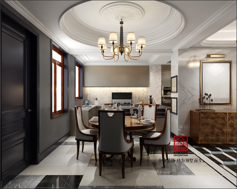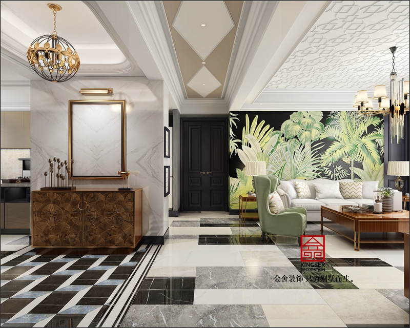 此案例為石家莊金舍裝飾-榮盛華府185平米美式風格裝修效果圖。生活中強調自由自在,隨意的不羈的生活方式,通過與業主的深入溝通,這正是業主想要的。本著輕裝修,重裝飾的原則,同時圍繞著業主對房子功能的要求,大膽又不失合理的對空間進行改造與功能劃分。在設計手法上,基于個性存于共性的設計理念,進而創新空間,在尋常家居格局里演繹經典,同時也完美的把握了空間設計中的造型。本案的設計重點是會客空間、門廳,餐廳的空間互通與交流。選用來自大自然的元素,整體舒雅的綠意,泛著高貴的清波,和著室內精煉的細節,柔軟而泛著詩意,彌漫在整個空間氛圍中,引領著另一種獨特的生活暢想。在整個獨特的空間渲染下,追憶生活的場景片段,沐浴著晨曦的光輝,自然中透著閑逸,生活亦是如此。忙碌的都市人,內心卻渴求平淡簡單的生活,那么這就是一處非常適合人居的寧靜幽美場所