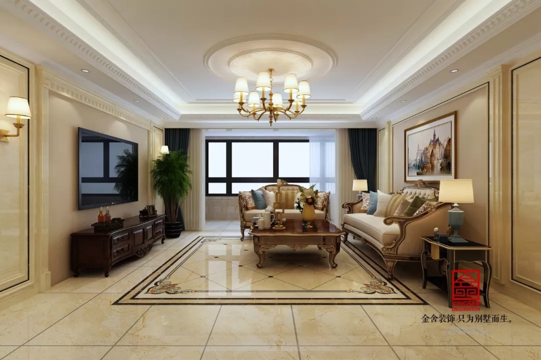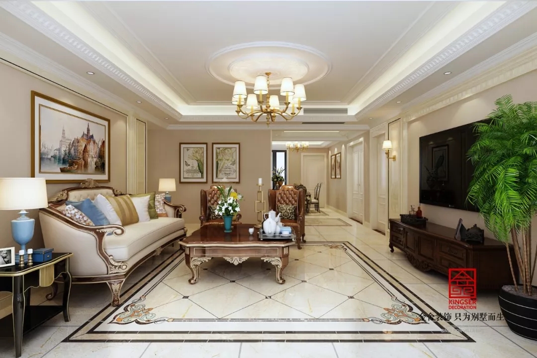 榮盛華府185平米簡歐風格裝修效果圖。