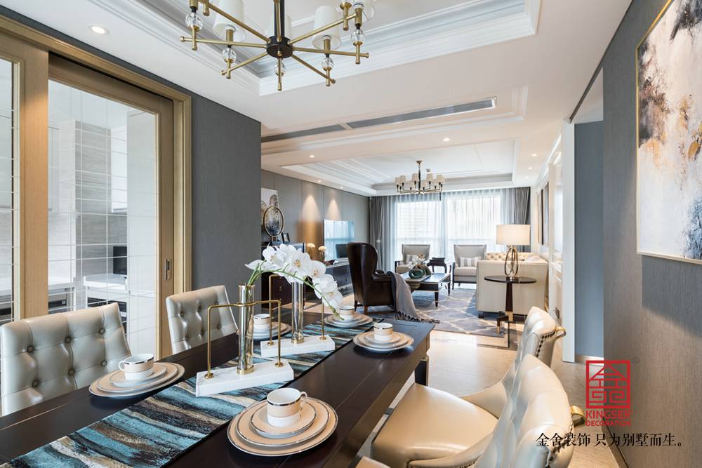 -榮盛和府198平米美式風格裝修效果圖。整體風格采用美式輕奢風格,輕奢不是浮夸體現了主人公對生活的精致態度,將這份精致融入生活正是對于輕奢最好的表達。舒適四居室,輕奢主義和現代美式的碰撞,成就了溫馨格調與設計質感的完美融合