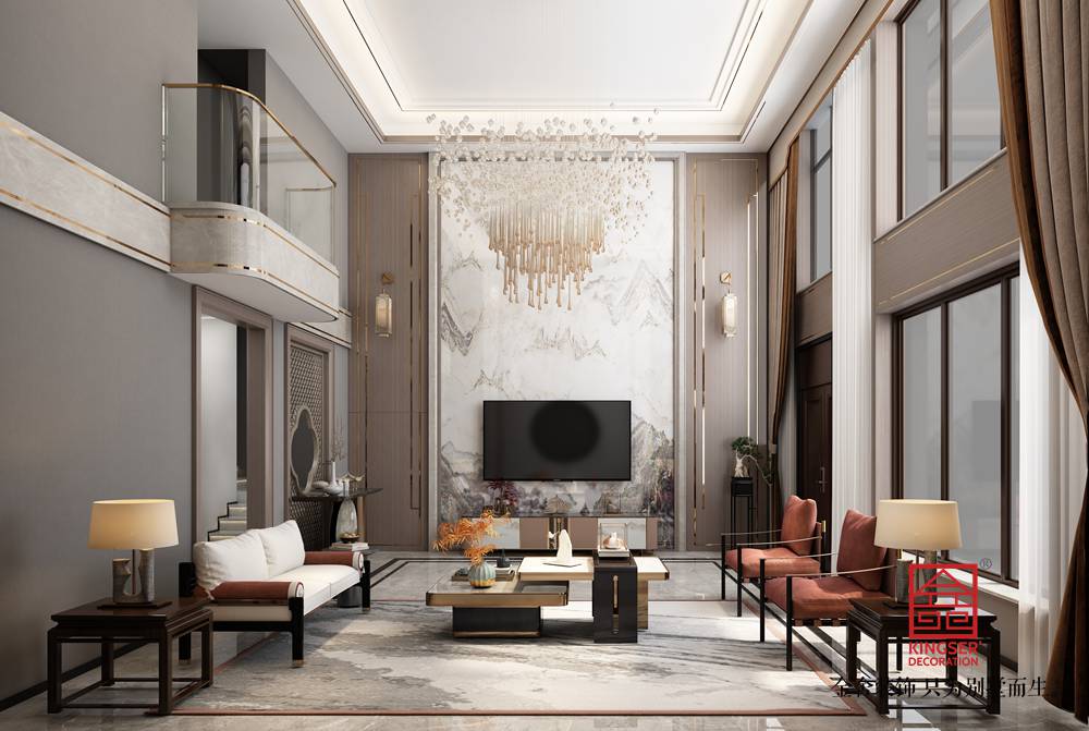 設(shè)計(jì)說明:此案例為石家莊金舍裝飾-榮盛和府別墅480平中式風(fēng)格裝修案例。新中式風(fēng)格從名字上看似乎是兩種風(fēng)格的融合,既有中式風(fēng)格的古典高雅又含有現(xiàn)代風(fēng)格的時尚元素,事實(shí)上新中式風(fēng)格不是純粹的元素堆砌,而是通過對傳統(tǒng)文化的認(rèn)識,將現(xiàn)代元素和傳統(tǒng)元素結(jié)合在一起,以現(xiàn)代人的審美需求來打造富有傳統(tǒng)韻味的事物,讓傳統(tǒng)藝術(shù)在當(dāng)今社會得到合適的體現(xiàn)。