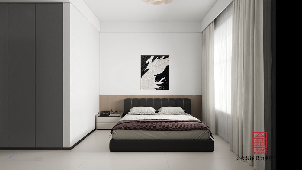 本設計案例展現了一個集現代美學與實用性于一體的客廳空間,完美詮釋了金舍裝飾對于高品質家居生活的追求與承諾。整體設計圍繞“簡約而不簡單”的理念,旨在打造一個既舒適又富有格調的居家環境。
