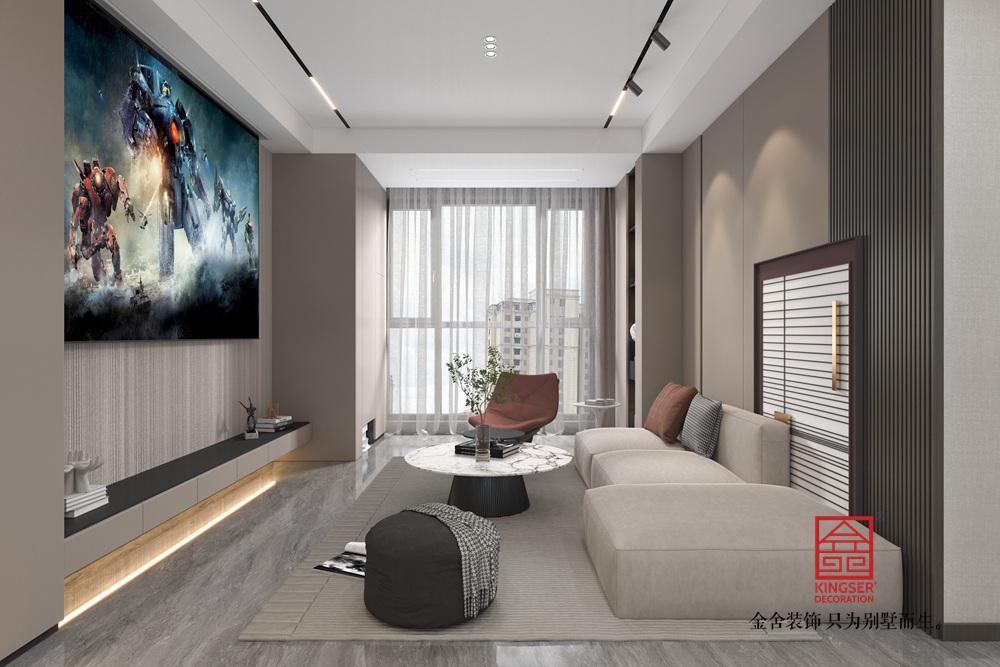 本客廳設(shè)計(jì)以現(xiàn)代簡(jiǎn)約風(fēng)格為主,融入輕奢元素。空間運(yùn)用米白、淺棕等柔和色調(diào),營(yíng)造出寧靜舒適的氛圍。墻面采用簡(jiǎn)潔的板材與線條設(shè)計(jì),搭配嵌入式燈光,增強(qiáng)層次感與溫馨感。