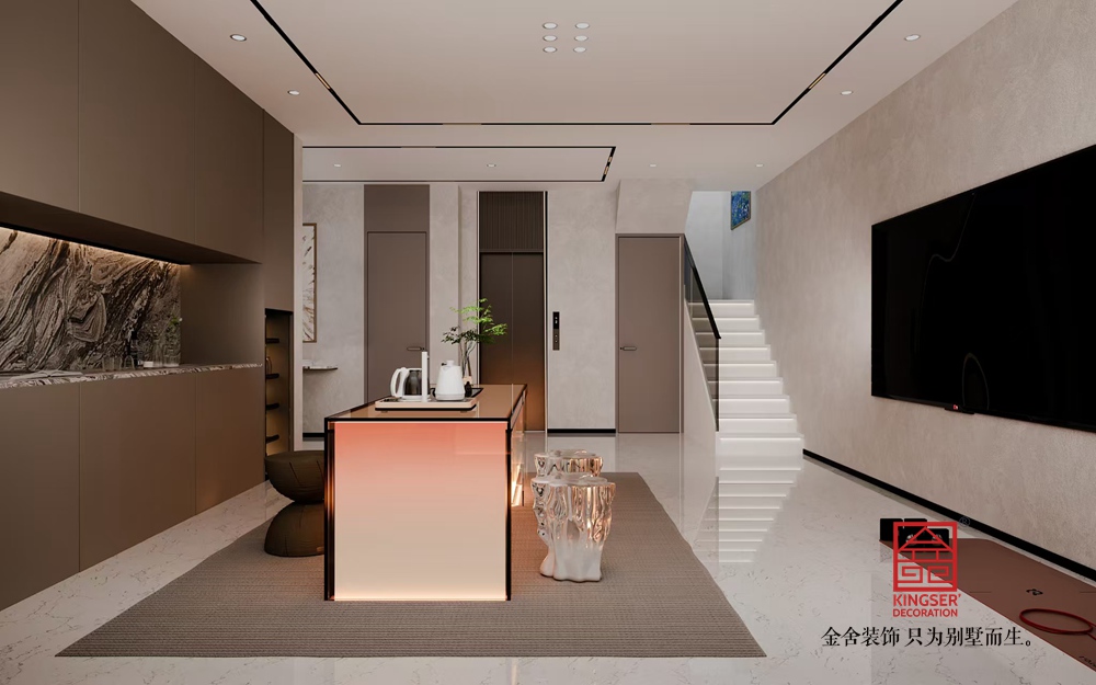 設(shè)計說明:該客廳以 “極簡美學(xué)與輕奢質(zhì)感的共生” 為設(shè)計理念,從空間布局、材質(zhì)運用到細節(jié)塑造,展現(xiàn)出別墅生活的雅致與舒適。