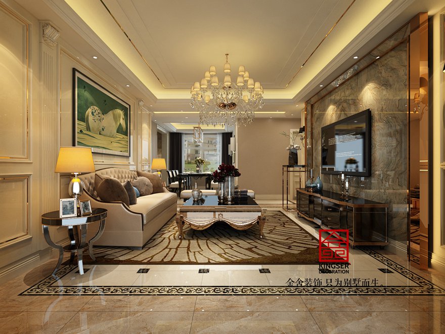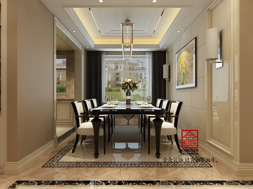 設計說明:此案例為石家莊金舍裝飾-中冶德賢公館160平米簡歐風格裝修效果圖。簡歐風格從簡單到繁雜、從整體到局部,精雕細琢,鑲花刻金都給人一絲不茍的印象。一方面保留了材質、色彩的大致風格,仍然可以很強烈地感受傳統的歷史痕跡與渾厚的文化底蘊,同時又摒棄了過于復雜的肌理和裝飾,簡化了線條。但綜合上而言就是結構上的對稱性,造型上多以圓和方為主,裝修材料多以精細和貴氣為主。